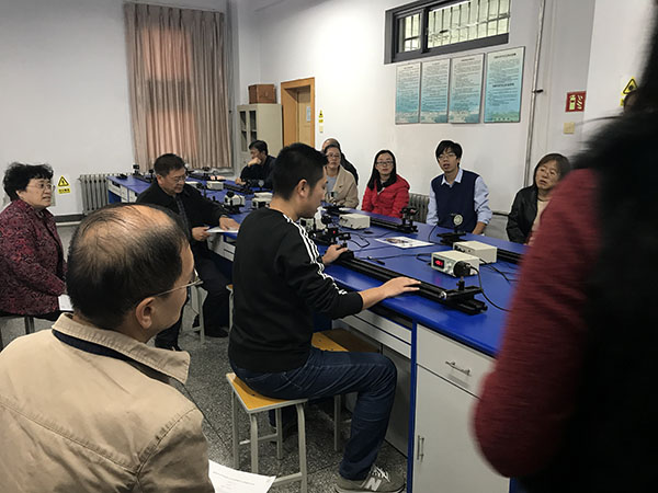 5位老师的实验项目分别是:王进的《单缝衍射的光强分布实验》、王美的《惠斯登电桥实验》、韩会景的《霍尔效应实验》、孙士家的《螺线管磁场的测量》、杨文华的《电表改装实验》。参赛教师讲课加现场演示20-30分钟,评委点评5分钟。由色碟