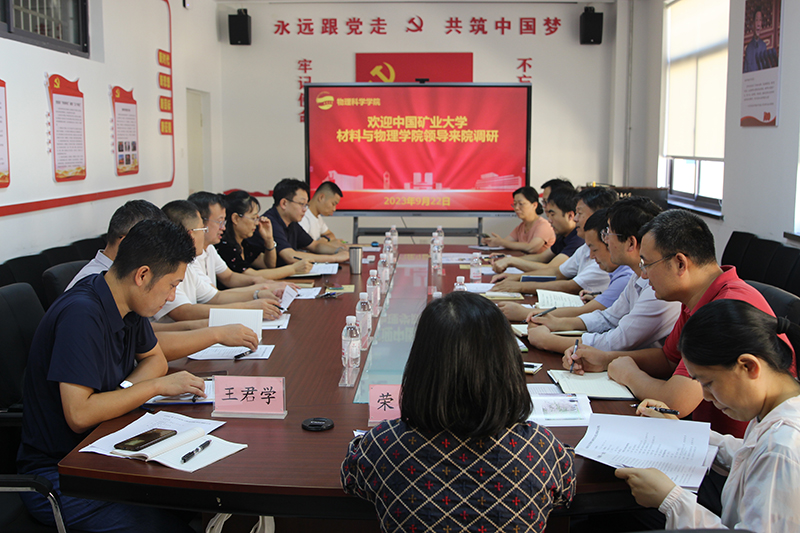 9月22日下午,中国矿业大学材料与十大色碟游戏网站 党委书记刘建光、副院长唐军一行到十大色碟游戏网站 就本科人才培养方案进行调研,院党委书记郝伟主持调研会,院长滕冰、院长助理邵渭泉以及相关系主任参加调研会。
