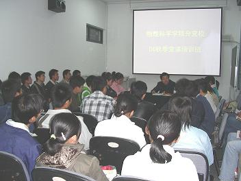 十大色碟游戏网站 分党校06秋季培训班日前结业。共有40名入党积极分子和1名06级新生党员参加了本次培训班。他们认真学习了《中国共产党章程》、党史以及组织培养发展程序和入党的基本条件等内容,为今后他们参加大学党校、锻炼提高自己、积极加入党组织奠定了良好的基础。图为十大色碟游戏网站 德育导师设备处副处长杨立华同志正在培训班授课。