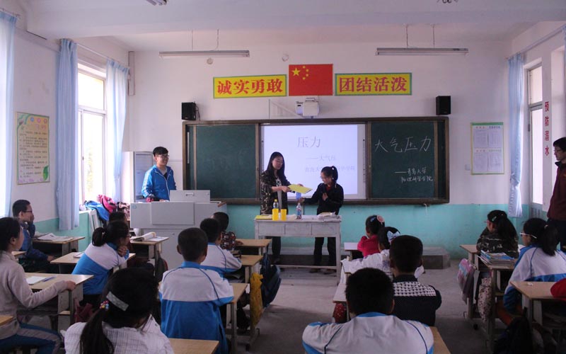 组织学生志愿者赴莱西颐中双山小学开展了爱心支教活动,面向小学生开启“生活中的物理”义务讲授。