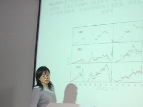 理化技术研究所做博士后,2005年11月至2006年12月在香港城市大学做研究助理。讲座中,薛博士介绍了第一性原理的基本知识以及第一性原理方法在材料科学中的典型应用,并向同学们介绍了自己的求学经历。最后,薛博士对同学们提出的学术和生活方面的问题一一作了解答。讲座气氛轻松愉快,让同学们领悟了科学世界的美妙与神奇。图为薛旭艳博士在讲座中。