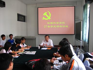 十大色碟游戏网站 07春季党课培训班日前结业。本期培训班共有43名入党积极分子参加。他们学习了党章、党史、当代大学生应该自觉接受党组织的培养和加入党组织是当代大学生的正确选择等内容,为他们的思想进步和参加校党课的学习奠定了基础。图为十大色碟游戏网站 大学生德育导师、校纪委书记、监察室主任吴绍欣同志在培训班授课。