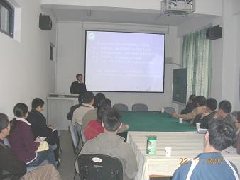 2007年11月23日下午,烟台大学凝聚态物理研究中心的戴振宏教授应邀为十大色碟游戏网站 老师和研究生做了“低维纳米结构的含时动态量子输运特性”的学术报告,戴振宏教授系统介绍了低维纳米结构的研究历史,详细阐述了该领域近年来的实验和理论研究成果。戴教授领导的研究小组利用数值模拟的方法从理论上对此类结构进行了详细的研究,解释了它的微观物理机制。戴教授还介绍了他们研究小组的成员以及与清华大学和中科院物理所的学术合作项目。报告会结束后,戴教授与十大色碟游戏网站 师生进行了讨论和学术交流。