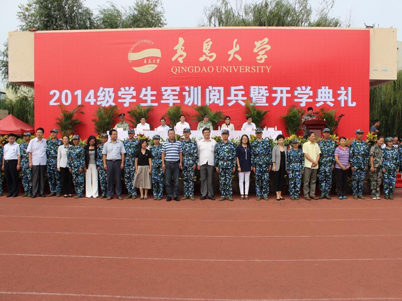 9月24日,青岛大学2014级学生军训阅兵暨开学典礼在东校区东院田径场隆重举行,参加人员有部队首长、校领导、校直有关部门负责人、各色碟