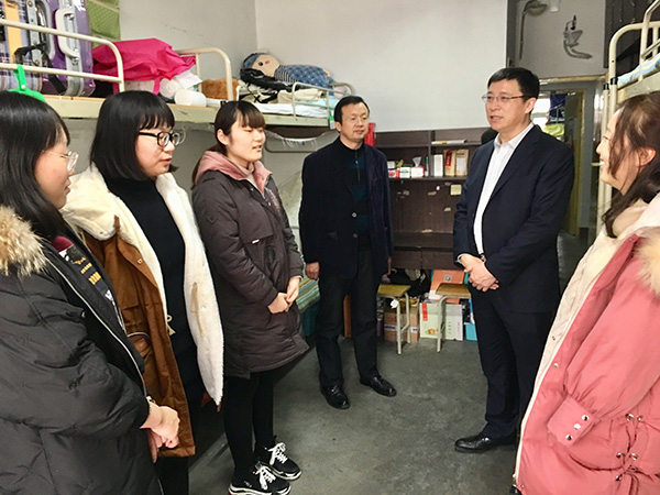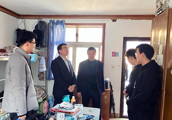 党委书记李升学、党委副书记郝伟,带领学生工作人员走访了学生公寓,深入学生中间,了解新学期学生思想动态,对宿舍文明、卫生等方面提出了要求,对存在的安全隐患进行了排查。