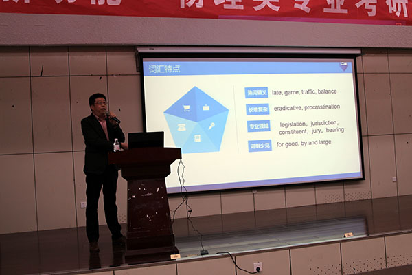 孙培星为同学们作了考研英语辅导报告。他从词汇、阅读、写作等方面介绍了考研英语的词汇特点和记忆方法、阅读的主要步骤和做题技巧以及写作的注意事项、目标要求和写作步骤等内容,强调写作要注意内容丰富、逻辑成立、上下衔接、行文流畅的目标要求和审题、构思、列提纲、写正文、修改的写作步骤。在讲解中,他通过幽默风趣的语言和精彩的案例博得了同学们的阵阵喝彩声。报告后他耐心回答了同学们的提问。