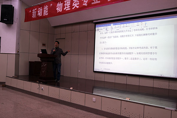 在图书馆报告厅举行“新动能”物理类专业2020年考研宣讲报告会。数学与统计色碟