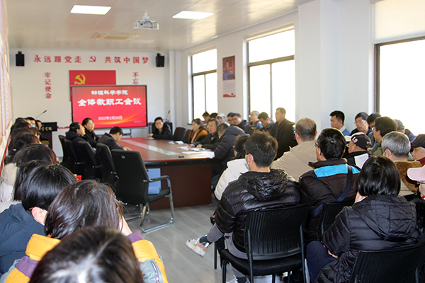 在博逸楼401会议室召开全体教职工会议,传达学校会议精神,部署新学期开学工作。会议由院长滕冰主持,院党政领导出席会议。