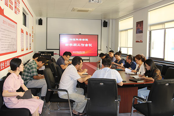 在博逸楼401会议室召开新学期工作会议。会议由院党委书记郝伟主持。院党政领导滕冰、董永红、王乙潜、龙云泽,党委组织员王志琴,院长助理邵渭泉、张永成,以及各系(中心)主任和支部书记参加会议。