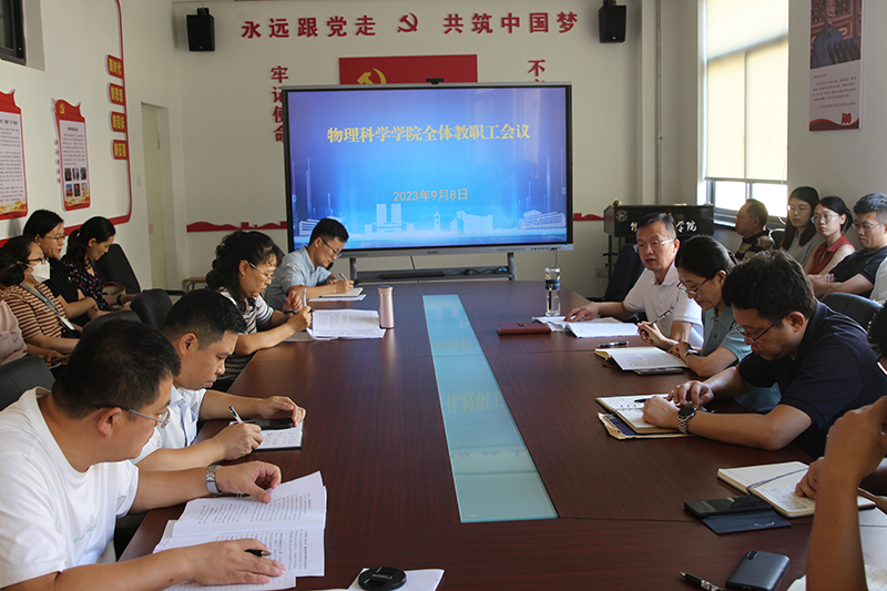 当前科研业绩情况;院长助理邵渭泉传达了学校教学工作会议精神,并对教学工作等相关事项进行了说明;院长助理张永成通报了学科建设和研究生招生有关情况。