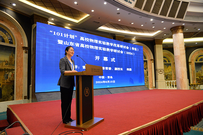 青岛大学党委常委、副校长何燕教授代表学校致欢迎辞,教育部大学物理课程教指委委员、国家级示范中心联席会物理学科组组长、101计划大学物理实验负责人、中国科学技术大学张增明教授致开幕辞。开幕式由十大色碟游戏网站