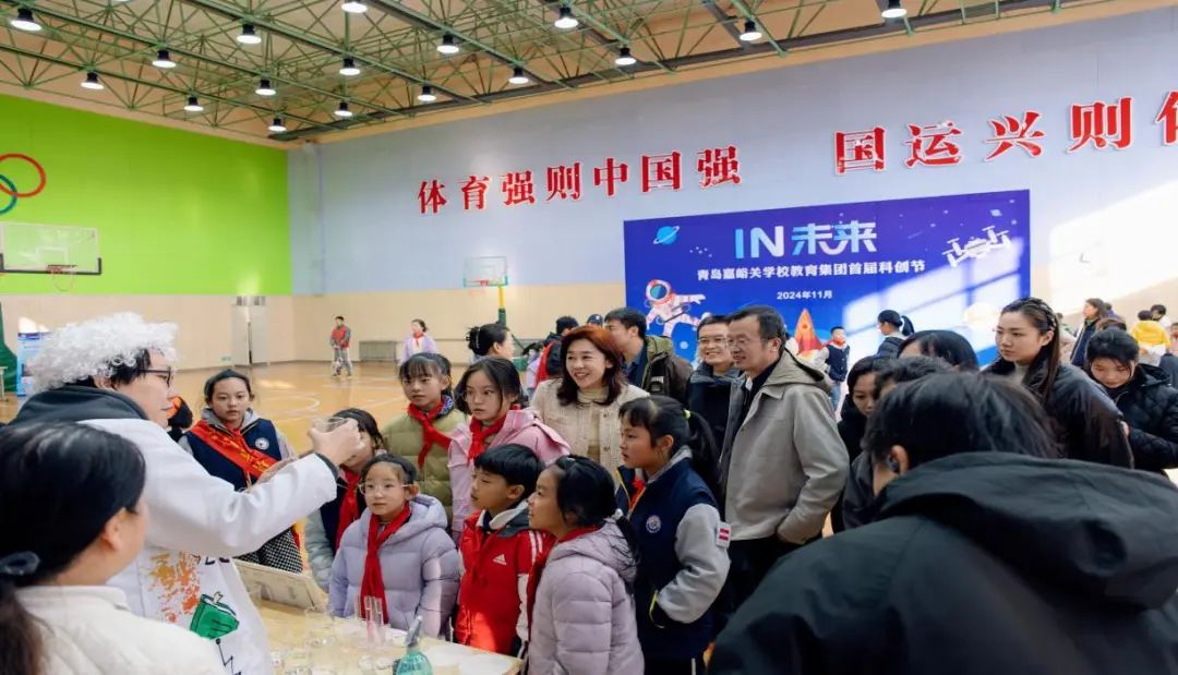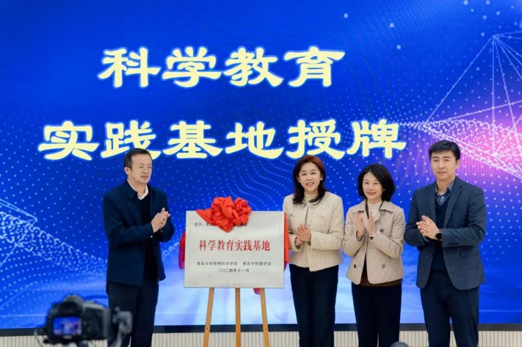 在青岛嘉峪关学校教育集团科创节启动仪式上,郝伟致辞,他介绍了青岛大学应用物理国家级实验教学中心相关情况,表示色碟