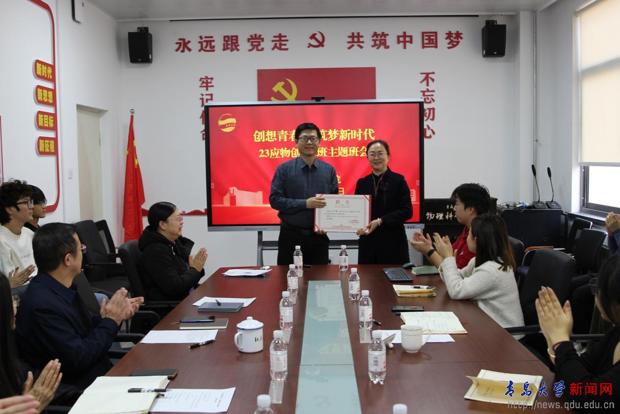 党委书记郝伟、院长李强、党委副书记董永红、班主任孙慧娟、辅导员宋泳震及2023级应用物理学创新1班全体同学参加班会。