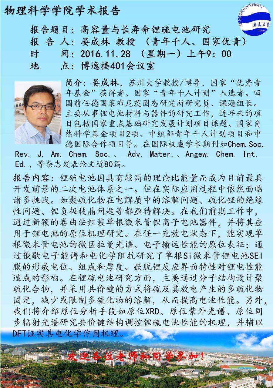 第二十一期物理前沿学术报告:苏州大学晏成林教授报告会