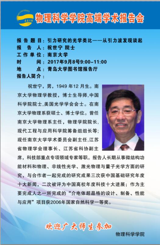 上一篇:2017物理前沿学术报告第三十四讲:极性分子基光电功能晶体的基础研究