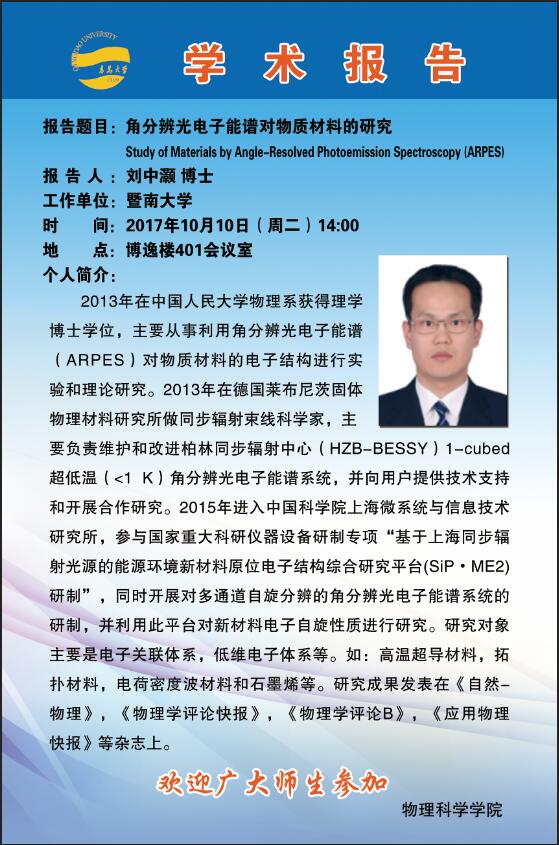 2017物理前沿学术报告第四十一讲:角分辨光电子能谱对物质材料的研究