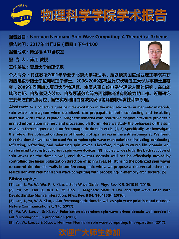 2017物理前沿学术报告第四十五讲:Non-von Neumann Spin Wave Computing:A Theoretical Scheme