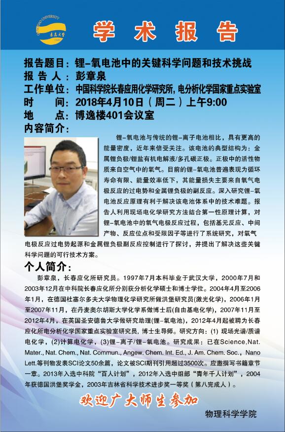 2018物理前沿学术报告第六讲:锂-氧电池中的关键科学问题和技术挑战
