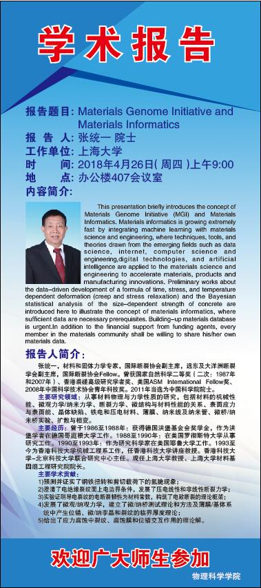 2018物理前沿学术报告第十讲:Materials Genome Initiative and Materials Informatics