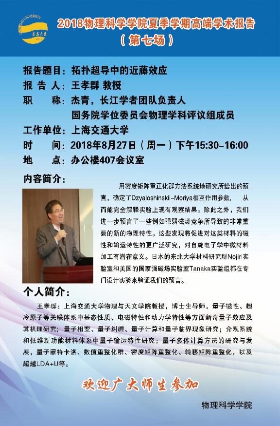 2018物理前沿学术报告第二十七讲:拓扑超导中的近藤效应