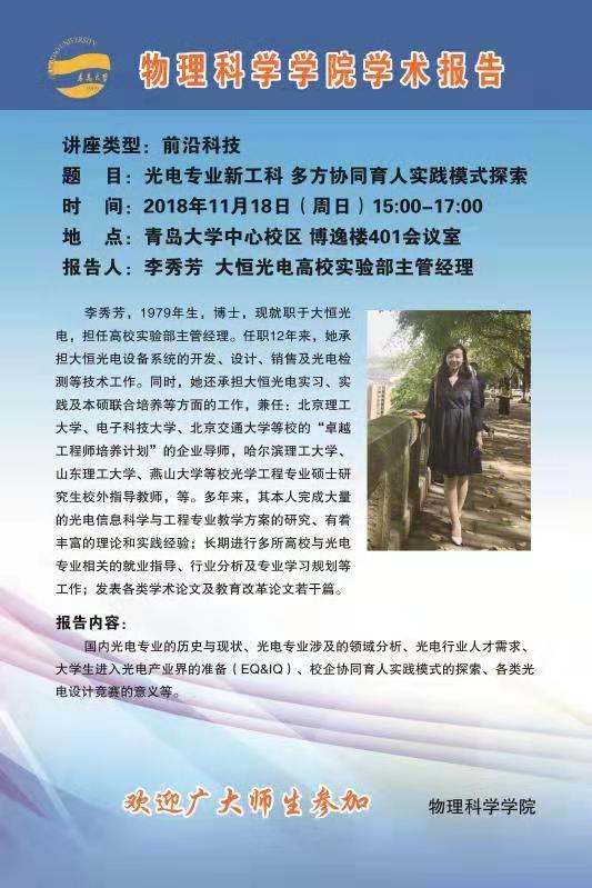 2018物理前沿学术报告第四十七讲:光电专业新工科多方协同育人实践模式探索
