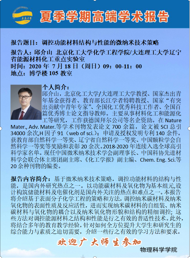 学术活动:调控功能材料结构与性能的微纳米技术策略