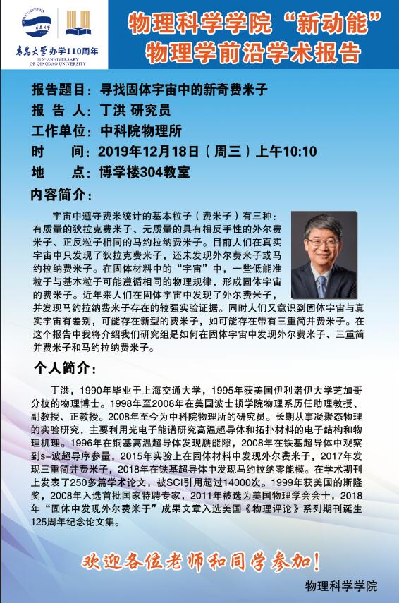 “新动能”物理学前沿学术报告28:寻找固体宇宙中的新奇费米子