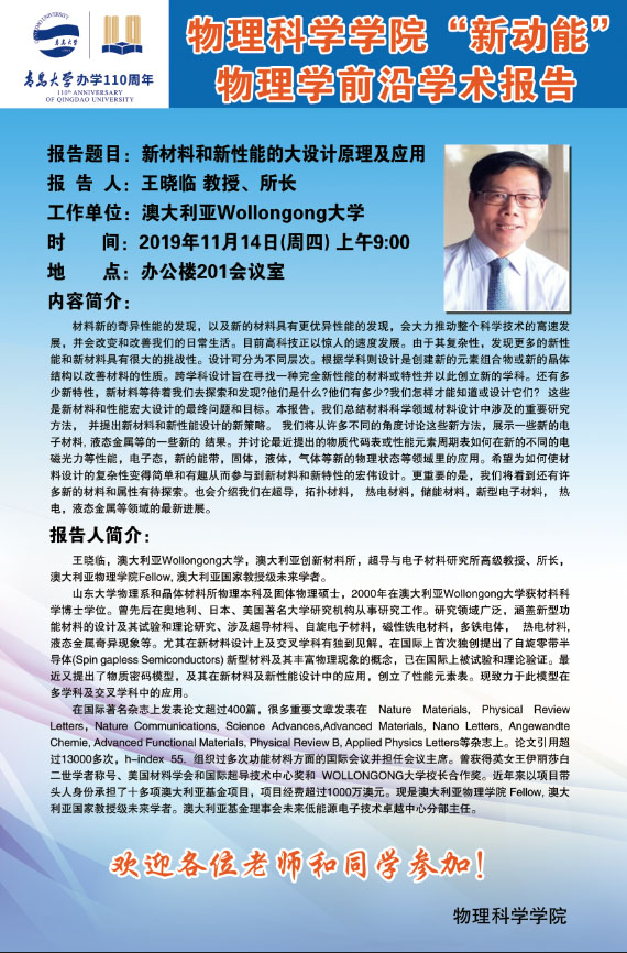 “新动能”物理学前沿学术报告25:新材料和新性能的大设计原理及应用