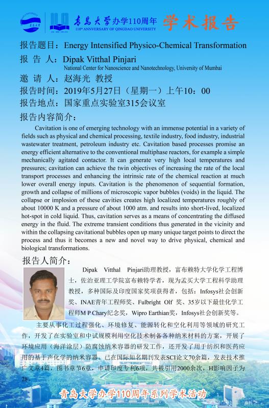 “新动能”物理学前沿学术报告8:Energy Intensified Physico-ChemicalTransformation