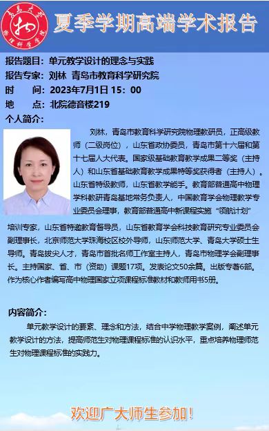 [学术预告]刘林-单元教学设计的理念与实践