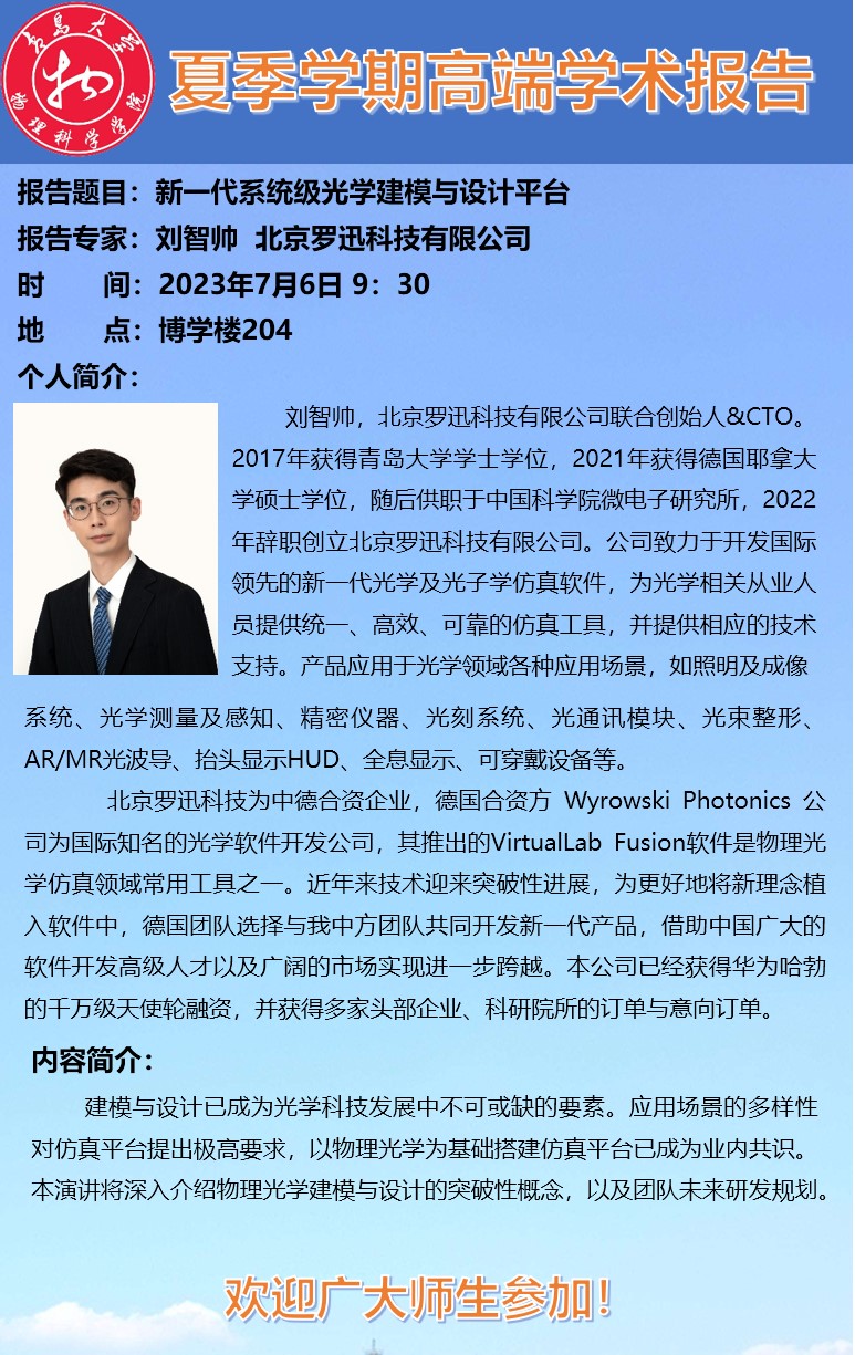 [学术预告]刘智帅-新一代系统级光学建模与设计平台