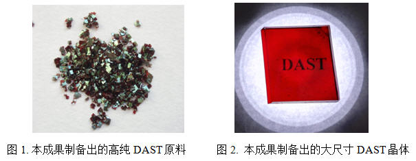 项目(成果)名称: 有机DAST晶体高纯生长原料合成和大尺寸单晶制备技术