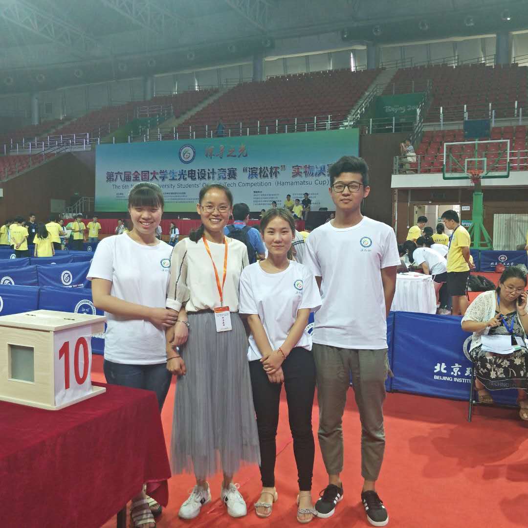726日至28日,第六届全国大学生光电设计竞赛在北京理工大学中关村校区举行。十大色碟游戏网站 学子在大赛上表现突出,由李世霞老师指导,王馨雨、吴婷、徐艺林3位同学组成的“什么都行”毛玻璃赛题参赛队荣获二等奖。该赛题共设13个一等奖,38个二等奖,51个三等奖。
