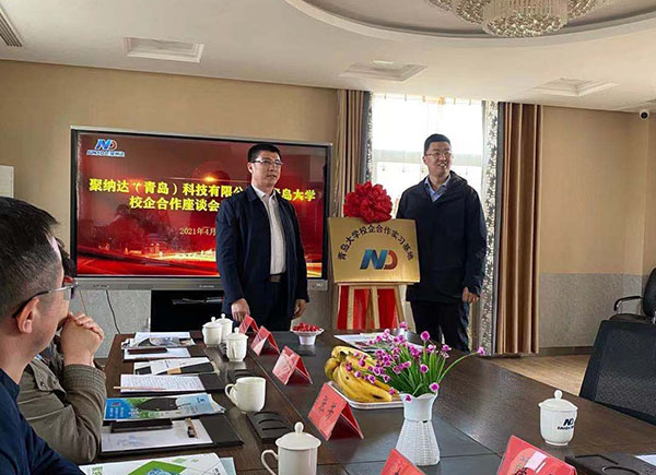 师生首先参观了院士港14号楼研学基地,随后与聚纳达(青岛)科技有限公司总经理于淼、副总经理钟金涛等进行了座谈,洽谈了双方在学生培养、创新创业项目等方面的合作事宜。会上,李升学和于淼为色碟