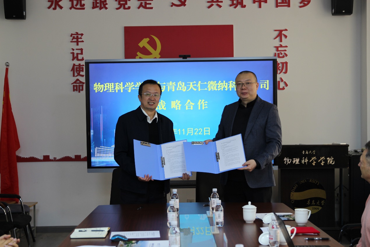 与青岛天仁微纳科技有限公司签署了产学研合作协议,郝伟为翼然博士和Massimo Tormen博士颁发了青岛大学客座教授聘书。