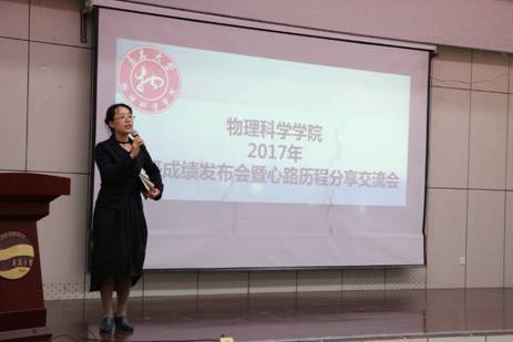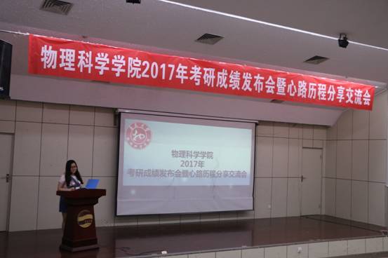 在浮山校区图书馆报告厅,举行了2017年考研成绩发布会暨心路历程分享交流会。会议由2013级材料物理专业张宁夏同学主持。