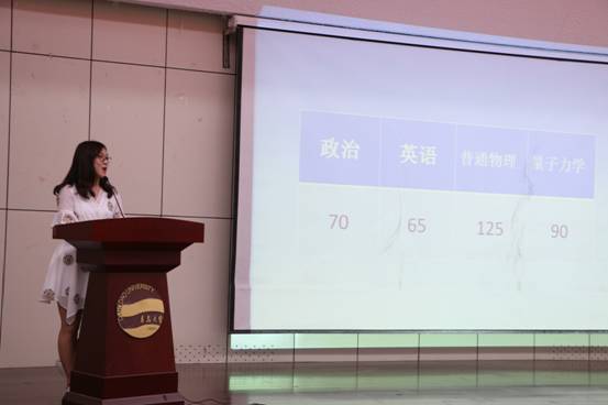 今年的考研成绩发布视频,学生优异的考研成绩为现场学生打入了一剂强心针。“学在物院,赢在未来”,在这里一切皆有可能。接着进行了考研心路历程分享交流,几位优秀的学长学姐现场跟学弟学妹们分享了他们的考研之路。