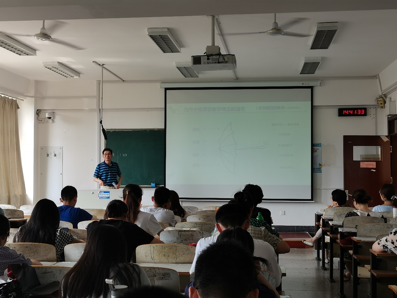 高守凯在报告第一部分通过举例方式向同学们介绍了当代中国课堂教学理念的演变,教学理念从凯洛夫五步教学法到布鲁姆目标教学理论再到三维目标教学理念,现在演变发展为核心素养教学观。“以教代学,以教带学,以教促学,变教为学”,高守凯用十六字总结当代中国课堂教学理念的演变。在报告第二部分,高守凯向同学们介绍了组织教学及教师课堂行为,从教态语言、课堂发问、课堂评价、课堂举例、课堂节制五个方面通过举例详细介绍了在教学中教师应如何组织教学以及课堂行为表现。从“教什么”、“怎么教”两个方面对组织教学及教师的课堂行为做了总结。在报告第三部分,高守凯向同学们介绍了典型课型的教学设计,他将课程归纳为五种类型、典型概念课、非典型概念课、典型规律课、非典型规律课、规律应用课。