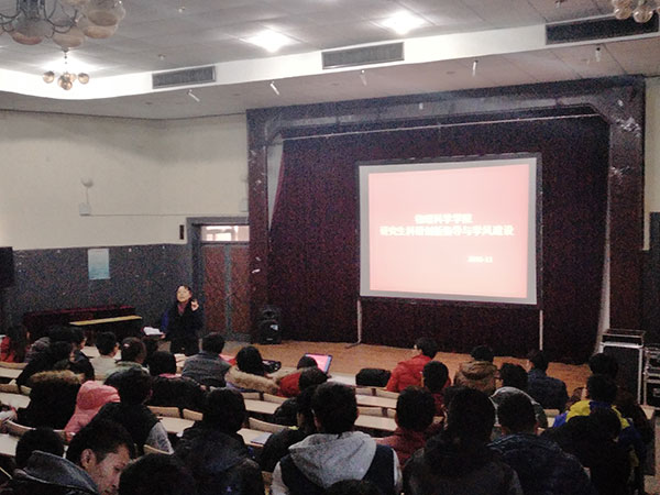重新修订的奖学金评审细则等内容,希望以此为导向扎实开展研究生培养各个环节的工作,努力实现培养高水平研究生的目标。她强调,研究生就学期间要在读100-200篇文献的基础上,充分了解国内外相关领域研究动态,为第三学期做好开题报告打下坚实基础,同时要总结前期实验工作,撰写科研论文,加强个人修养和团结协作,为第四学期在中期筛选中争取优秀创造条件。在研三年时间要勤奋拼搏,提前撰写至少两篇学术论文,并高水平完成毕业论文工作。这些要求使研究生明确了努力方向,对促进研究生学风建设具有重要的意义。