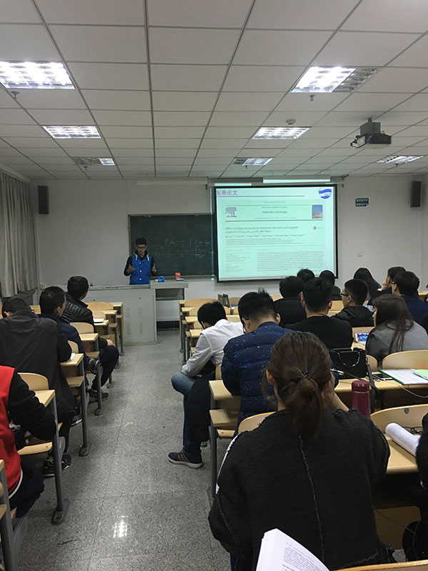 2014级研究生刘宾在浩园307教室作了题为“钙钛矿功能氧化物薄膜LSCO的微观结构和性能研究”的学术报告。色碟