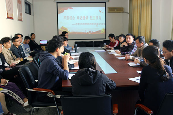 在博逸楼401会议室举行“不忘初心、牢记使命、担当作为”院领导联系班级工作会议。院党委书记李升学、院长滕冰、党委副书记郝伟、副院长王乙潜和龙云泽出席会议,会议由郝伟主持。院长助理张永成,2017级班主任代表李洪森、张昆、王静,党政办王君学、刘燕,以及2017级各班相关班干部参加会议。