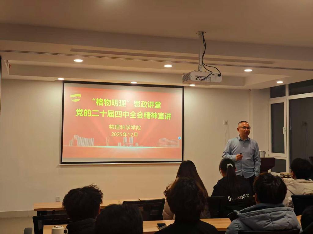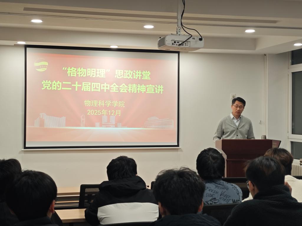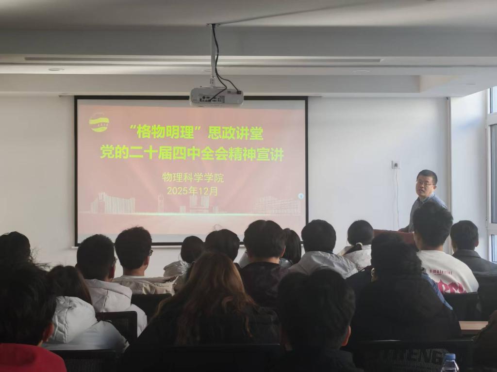 落实立德树人根本任务、推动党的创新理论进校园进课堂进头脑的重要举措,实现了理论宣讲与育人实践的有机结合。现场学子认真聆听、专注记录,纷纷表示宣讲既有理论高度又有实践温度,不仅深化了对全会精神的理解,更明确了物理专业学子的责任担当。大家将以饱满热情投入专业学习,用实干践行青春使命,在推进中国式现代化建设的征程中贡献青春力量。