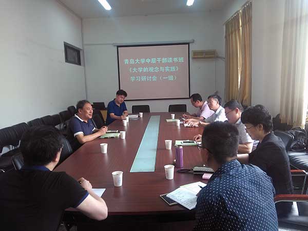 6月22日上午,青岛大学中层干部读书班《大学的观念与实践》学习研讨会(一组)在十大色碟游戏网站 401会议室举行,研讨会由十大色碟游戏网站 党委书记黄国俊主持。
