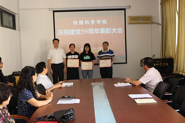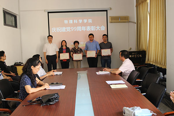 在博逸楼401会议室举行庆祝建党99周年表彰大会暨重温入党誓词活动。院党委书记李升学,院党委副书记、院长滕冰,院党委副书记郝伟,副院长王乙潜、龙云泽出席会议,会议由滕冰主持。院长助理、各党支部书记、受表彰人员、党员代表参加会议。