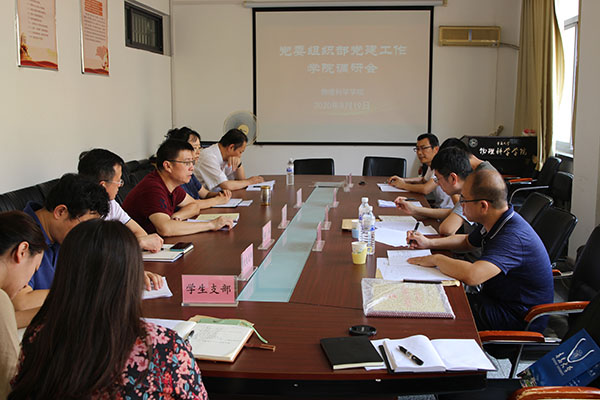 进行党建工作调研,调研会在博逸楼401会议室进行。党委组织部副部长吴鹏、党校副校长张光明,院党委书记李升学、院长滕冰、党委副书记郝伟、党委组织员房运琦以及色碟