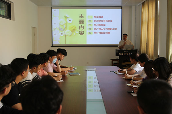 李升学为入党积极分子作了题为《中国共产党章程》的报告。他从党章概述、历次党代会与党章、学习新党章、共产党人与党章的故事、学好用好新党章等五个层面对党章的发展历程和各个时期的主要特色作了详细阐释。他向入党积极分子分享了学习党章的方式方法,要求大家自觉学习党章、遵守党章、贯彻党章、维护党章,真正使党章内化于心、外化于行;要正确认识和深入理解党员标准,端正入党动机,自觉接受党组织的培养教育和考察,以实际行动争取尽早加入党组织。