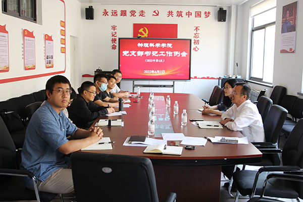 6月2日下午,色碟 在博逸楼203会议室召开2022年度党支部书记第4次工作例会。院党委书记郝伟主持会议,党委副书记董永红及各党支部书记参加会议。
