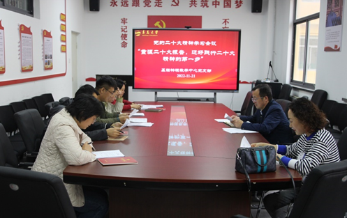 郝伟从学习党的二十大精神的感想、党的二十大报告中的新概念新名称以及色碟 基层党建工作思路与方案等三个方面,向支部全体党员进行了二十大精神的宣讲。希望每一位党员同志能够坚持以新时代中国特色社会主义思想为指导,深入学习和贯彻党的二十大精神和党的教育方针,坚决落实立德树人根本任务,为党和国家培养德智体美劳全面发展的社会主义建设者和接班人。