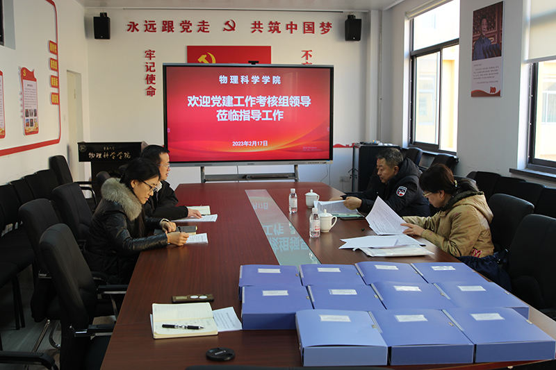 2月17日下午,学校党建考核组杨立华、梁丽一行到十大色碟游戏网站 进行党建工作实地考核。色碟 党委书记郝伟进行了2022年度党建工作开展情况汇报,党委副书记董永红参加汇报会。