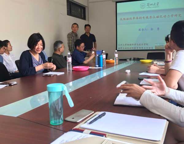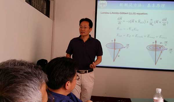 师生作了题为《低维磁性单体的电镜原位磁化动力学研究》的学术报告。报告会由卢朝靖教授主持,单福凯教授、戚凭教授、刘国侠教授等40余名师生聆听了报告。